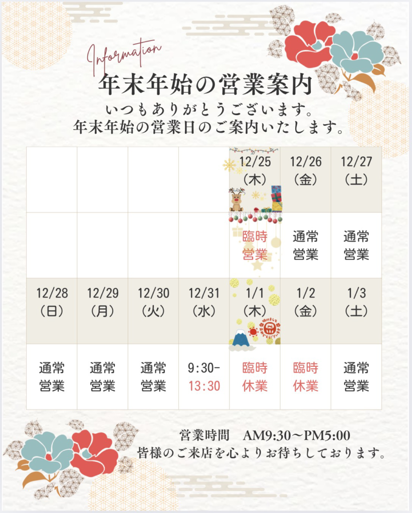 【年末年始 営業日程】